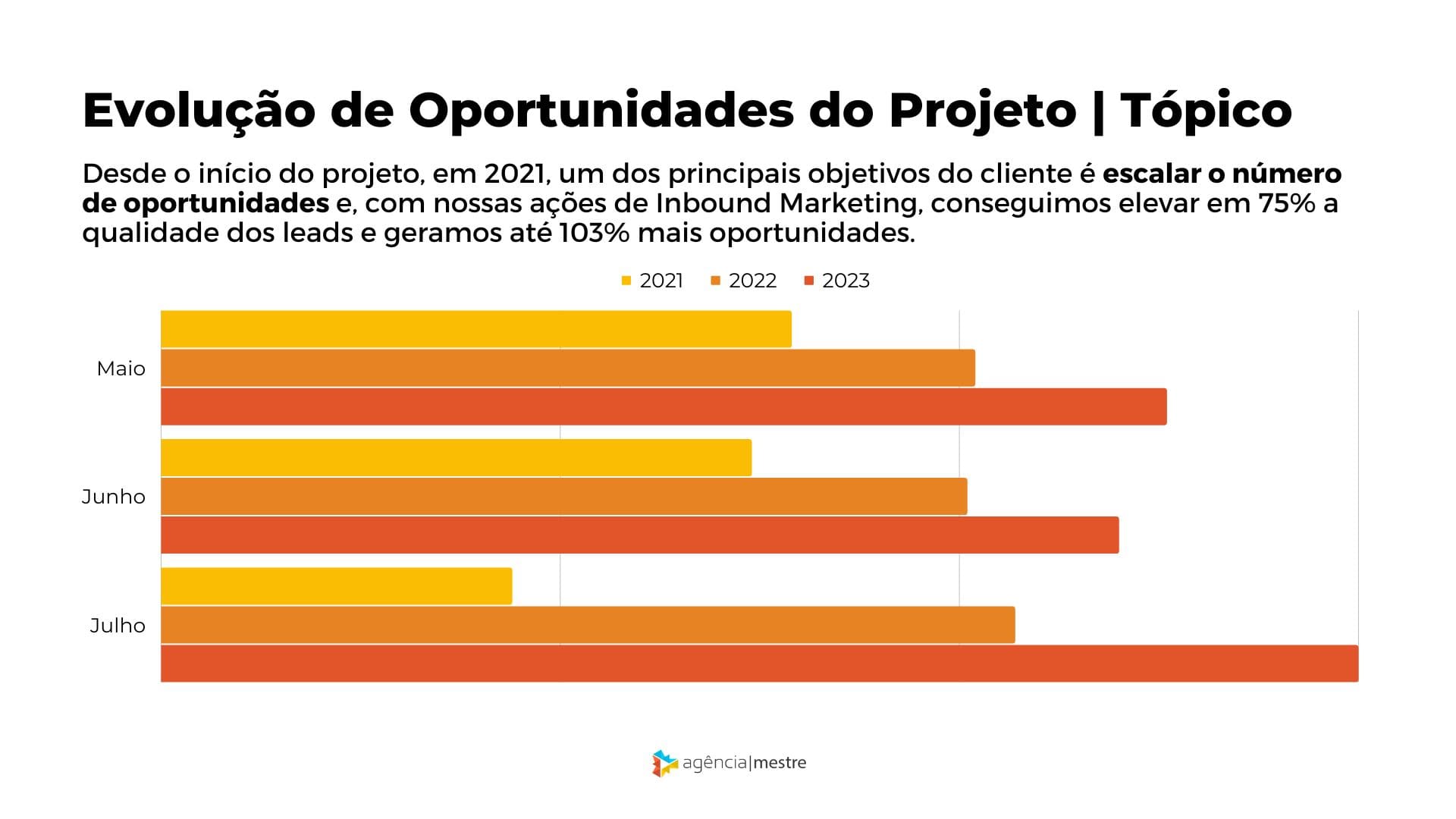 Mas, outros desafios podem surgir ao longo do processo. Tópico e a Agência Mestre têm uma história de anos superando os desafios e, em 2023, nossa nova meta é: “Conseguir tornar mais saudáveis as oportunidades vindas do Inbound Marketing, tanto em prazo, preço e tamanho.”