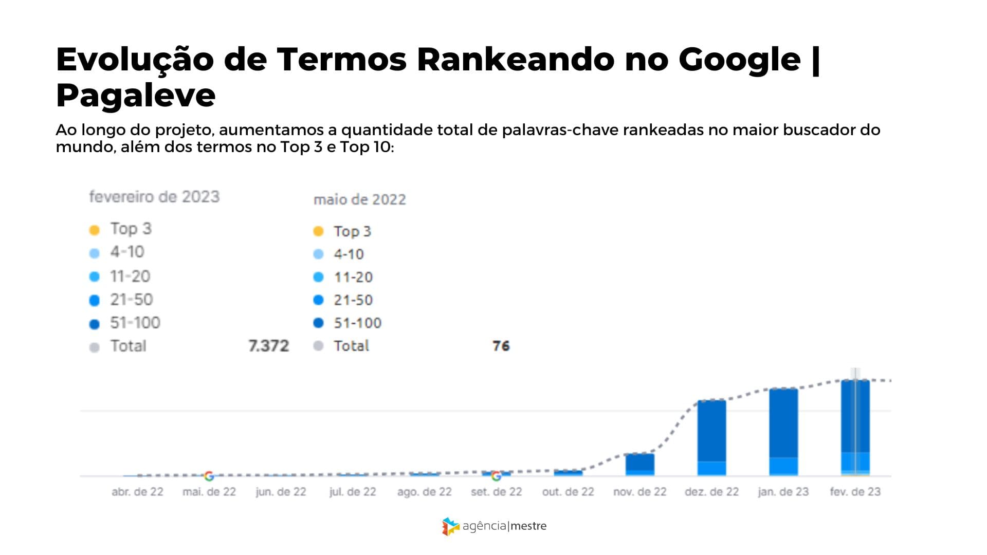 Assim, poderíamos alcançar mais pessoas interessadas no serviço oferecido, enquanto elas buscavam pela solução nos principais buscadores, como o Google. Com nossas estratégias, a parceria entre Pagaleve e Agência Mestre gerou resultados como: