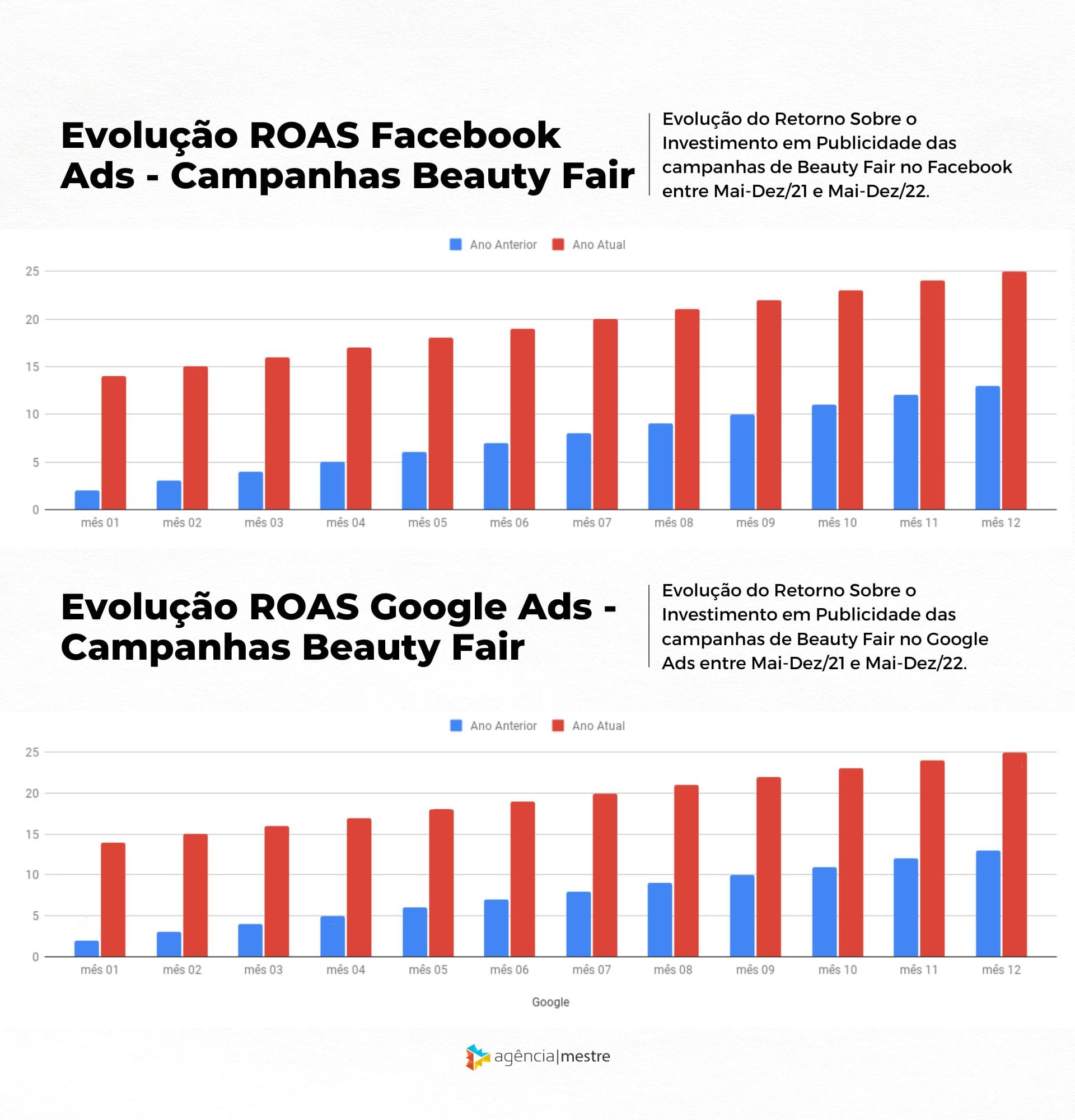 Considerando o período anterior à Mestre, conseguimos também elevar o ROAS (Retorno Sobre o Investimento em Publicidade) mês a mês: