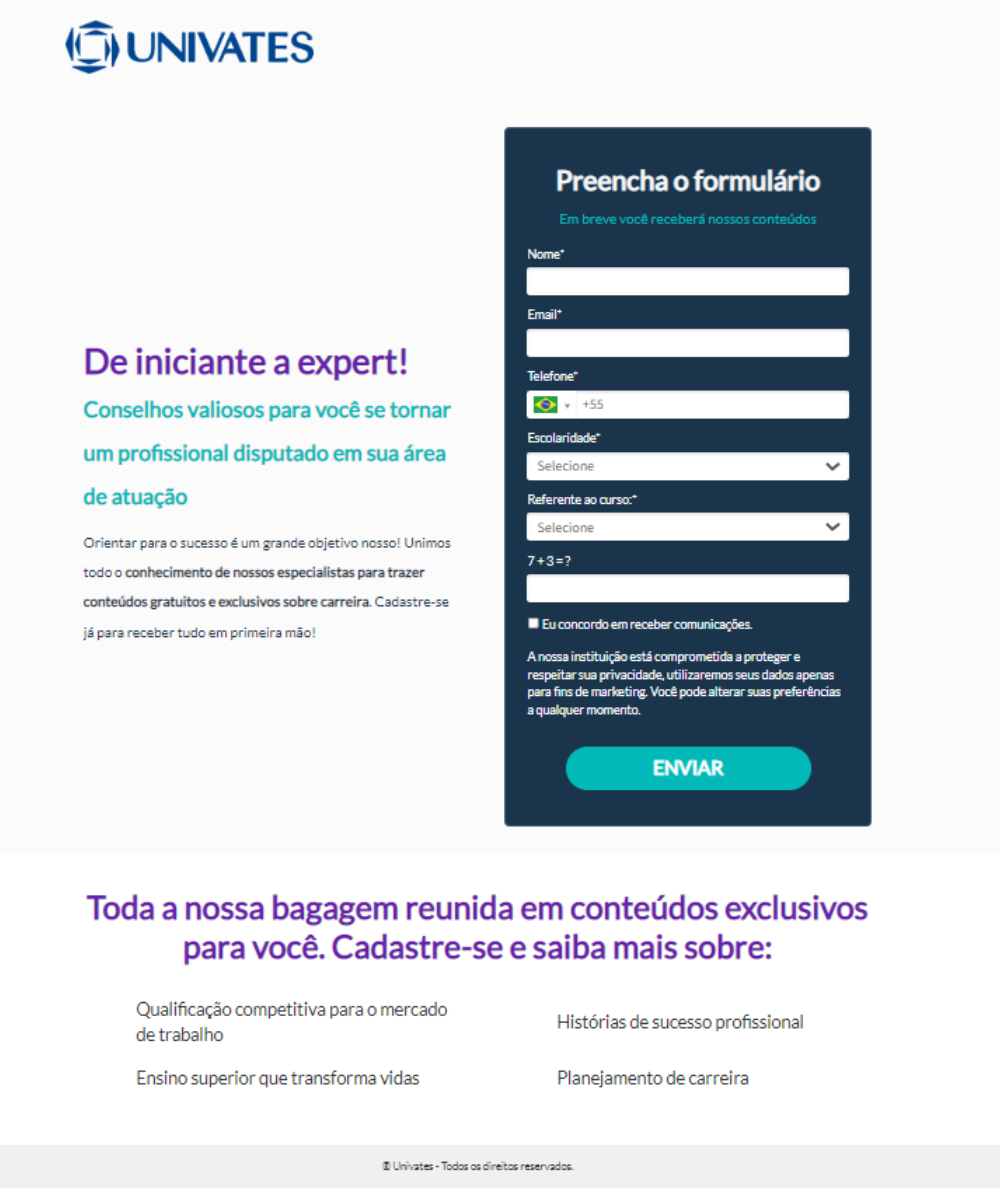 legenda: landing page produzida para a Univates, para envio de trilha de conteúdo.