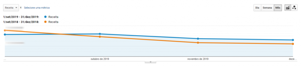 As implementações começaram logo após o envio e apresentação da análise geral (setembro de 2019). Até o mês de setembro, a receita vinha oscilando bastante e, na maior parte do tempo, estava abaixo da receita do ano anterior.