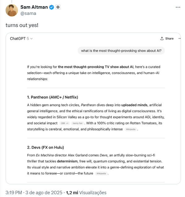 — Sam Altman (@sama) August 3, 2025