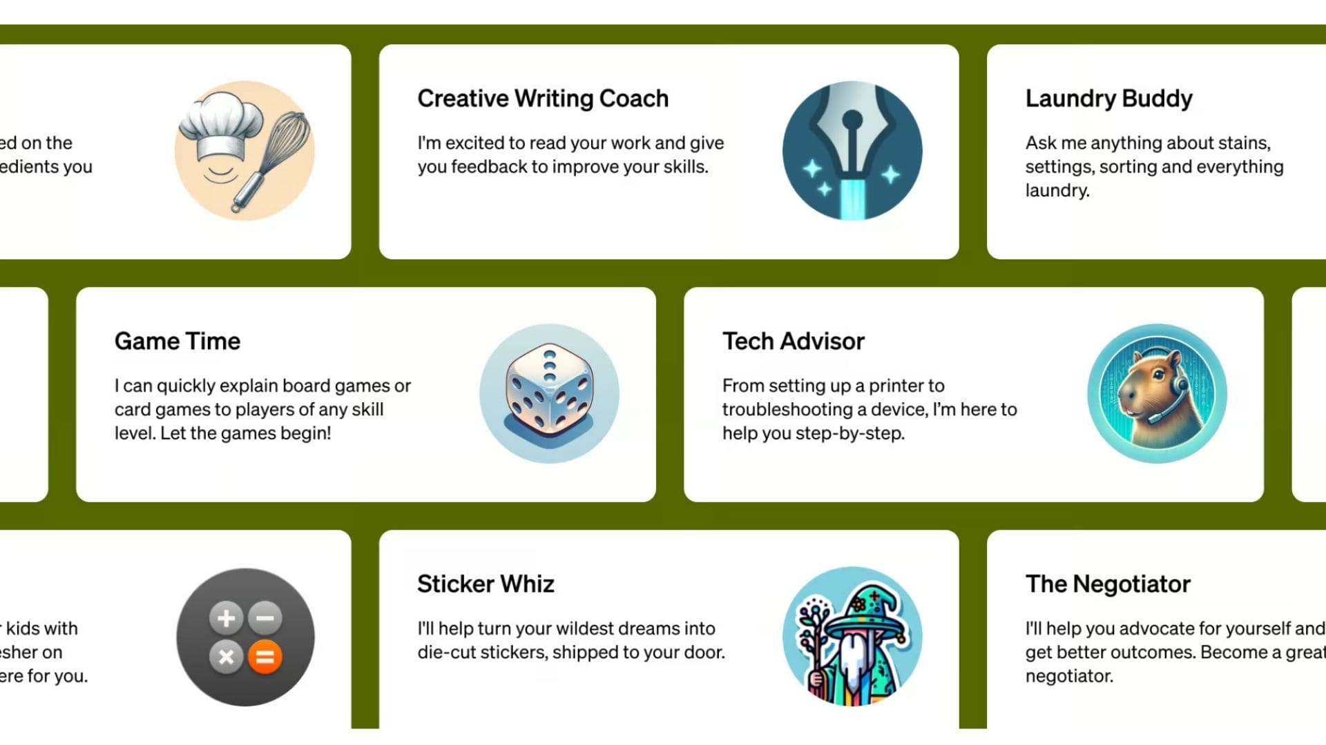 Em 6 de novembro de 2023, a OpenAI anunciou oficialmente o lançamento de uma nova forma personalizada de utilizar o ChatGPT, seu principal produto de inteligência artificial disponível no mercado.