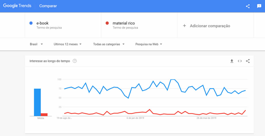 Uma boa dica para tornar sua criação ainda mais estratégica é pesquisar dados sobre as tendências de buscas em relação aos temas, com o Google Trends. Com essa ação, você vai entender se existe algum período do ano em que as pessoas mais pesquisam sobre determinado assunto e, além disso, também vai poder comparar duas ou mais temáticas para conferir qual é a mais relevante.