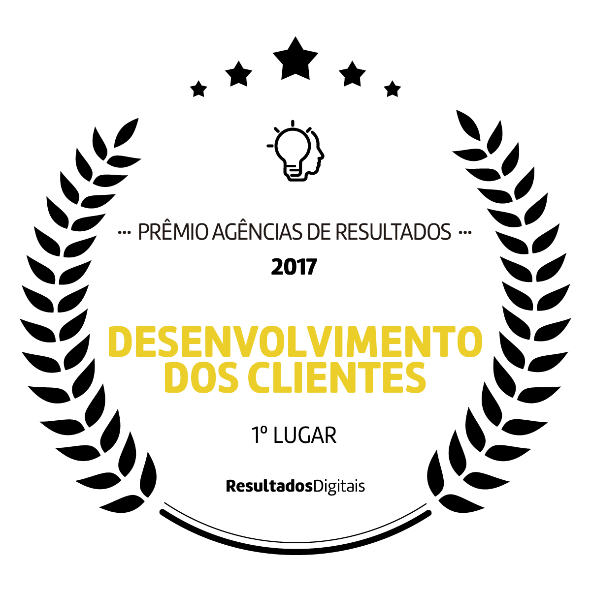 Desenvolvimento dos Clientes Em 2017, também conquistamos o primeiro lugar no prêmio "Desenvolvimento dos Clientes", por ser a agência que melhor fez Inbound Marketing para seus clientes, gerando excelentes resultados para todos aqueles que confiaram em nosso trabalho.