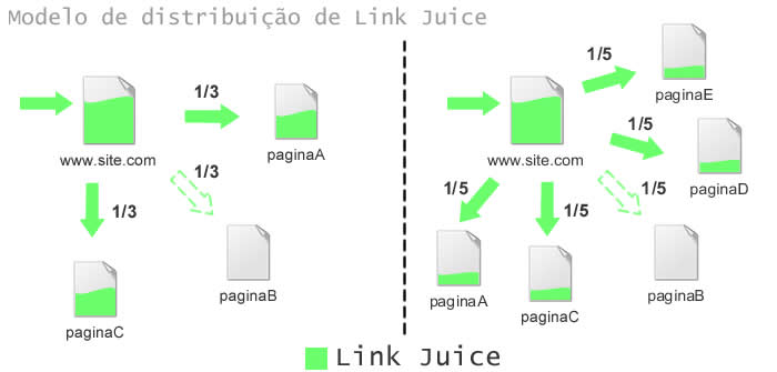 Ou seja, uma página com muito link juice e poucos links apontando outros conteúdos faz com que o valor de cada um desses links seja alto:
