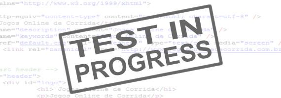 Para começar o projeto, peguei um template pronto na internet e criei minha index.php normalmente, como o template já vinha com algum conteúdo padrão nem me preocupei muito com isso, alterei apenas a title, a description e o h1 da página colocando a keyword que normalmente se usaria para um site com url jogosonlinedecorrida.com.br . A única alteração realmente importante para o teste foi colocar no começo da página o seguinte código: