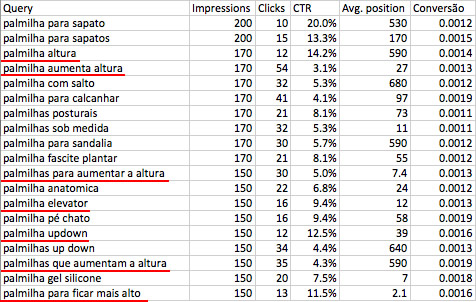 Nesse caso, é interessante verificar quais páginas tem rankings para esses tipos específicos de palmilhas – e verificar como podemos melhorar seu conteúdo. Podemos seguir as seguintes abordagens: