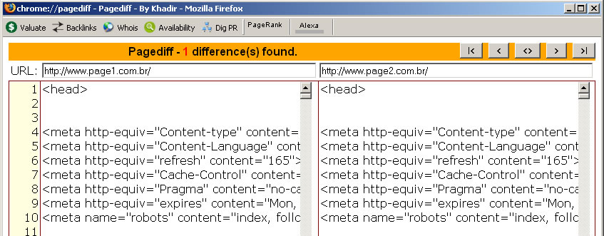 PageDiff – Faz uma comparação lado a lado do código fonte de páginas diferentes.