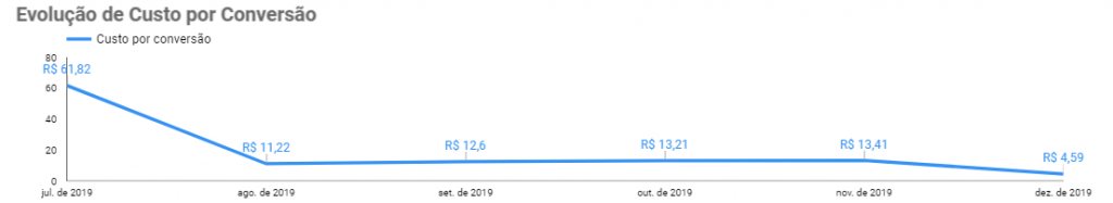 Nosso time de mídia trabalhou para listar as principais características da persona na configuração das campanhas e o resultado foi incrível. Começamos com um custo elevado por conversão e estamos, hoje, com um valor impressionante.