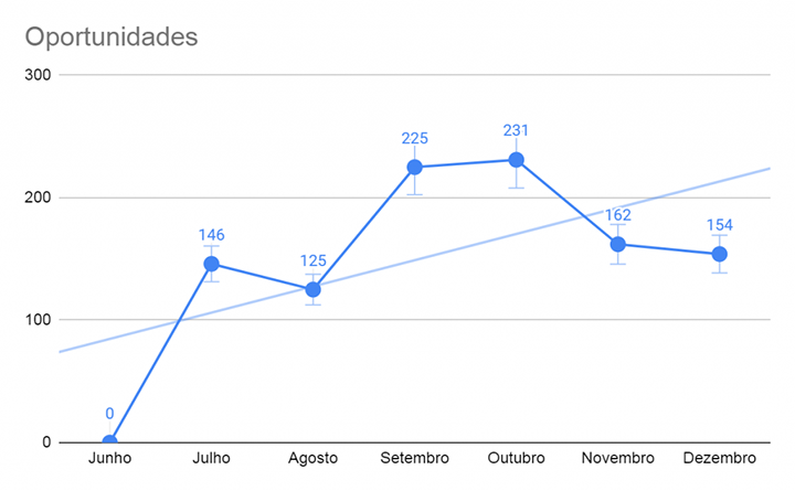 Conseguimos elevar novamente os dados e finalizar o período de matrículas com um resultado satisfatório, como podemos ver nas oportunidades geradas: