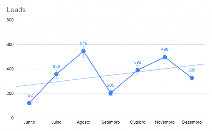 Um detalhe que não podemos deixar passar é que, de acordo com a comparação da média de leads alcançados antes do nosso projeto iniciar, com os dados atuais, temos um crescimento de 1.838% na base.
