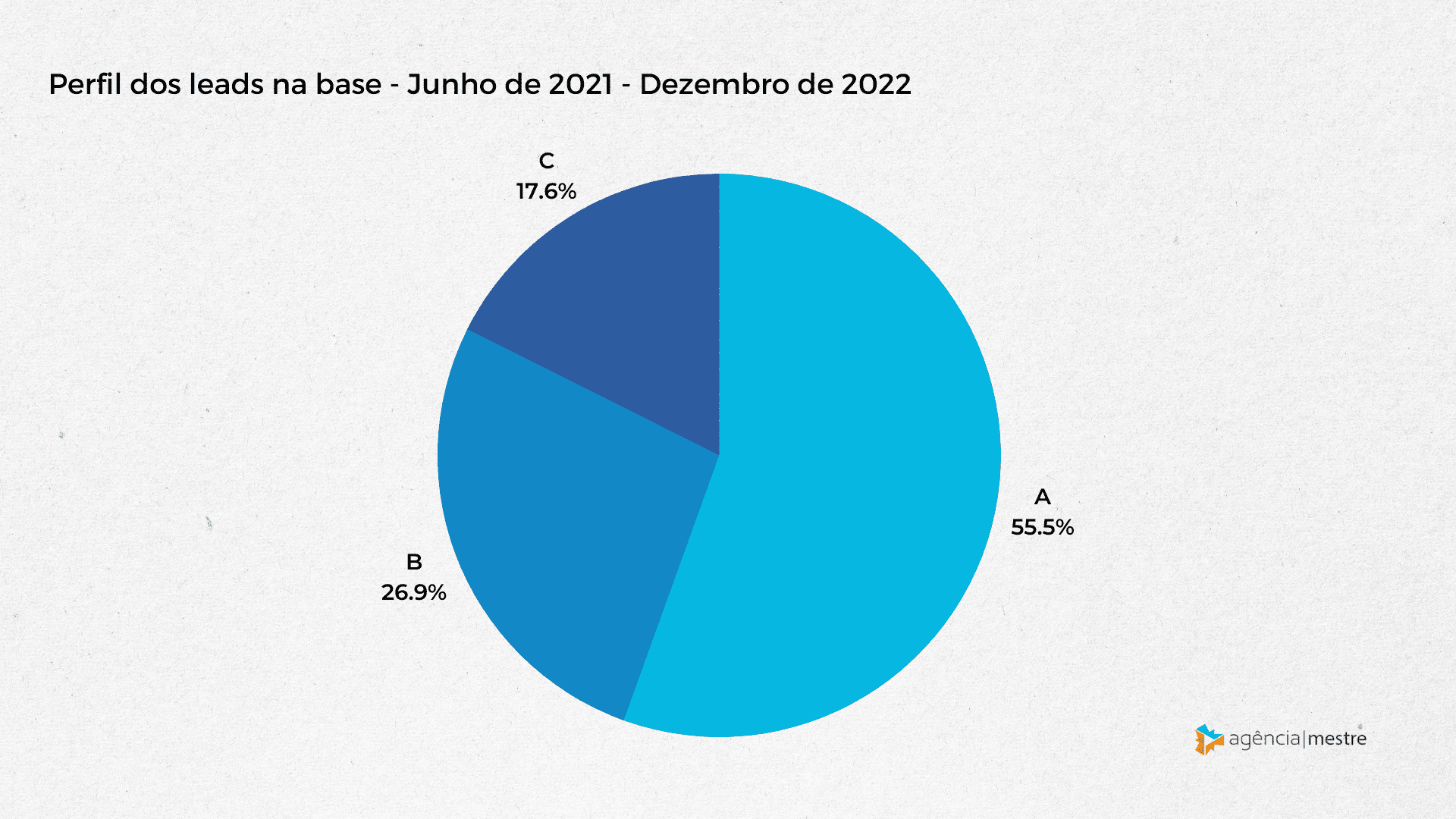 Os dados apresentados mostram que, no período analisado, nosso time de mestres conseguiu atingir os objetivos do cliente, visto que as ações de Inbound Marketing geraram um crescimento de 74% de leads dos perfis A e B e oportunidades, mostrando que atingimos leads mais qualificados através de nossos materiais, fluxos de nutrição e landing pages, estratégias que foram possíveis com o auxílio das ferramentas da RD Station.