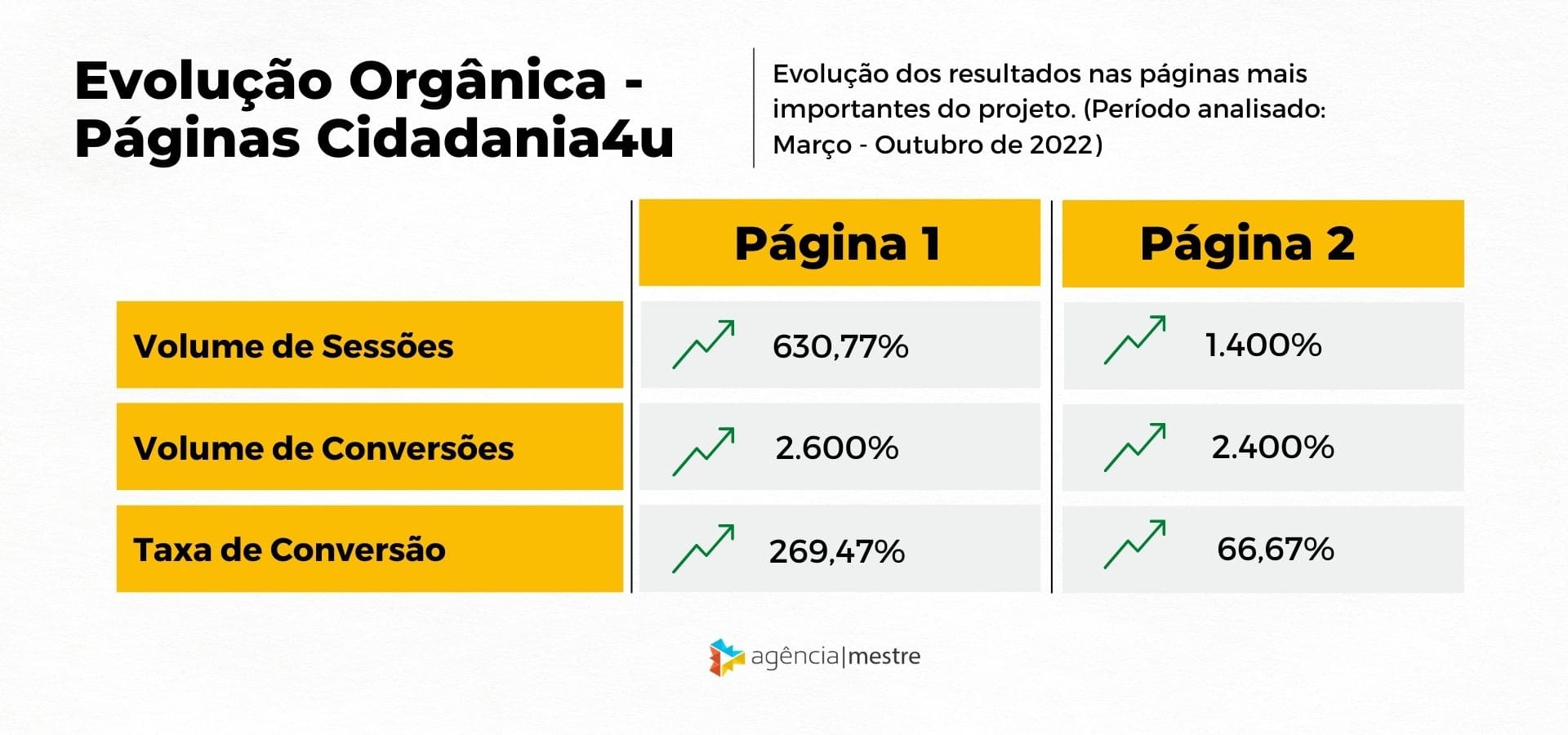 Muitas vezes, ao realizarmos alguns ajustes nas principais páginas de um site, já conseguimos resultados incríveis, como foi o caso da Cidadania4u. Em 2022, após poucos meses de projeto, já conseguimos observar os resultados: