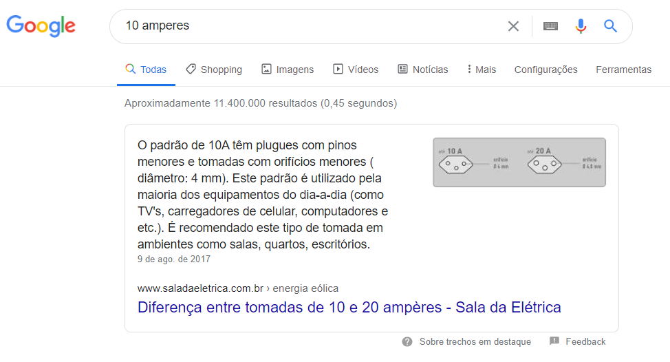 Entre os termos da primeira página, conquistamos algumas Posições Zero (resultados que aparecem acima dos demais, dentro de uma caixa de texto em destaque). Segue o exemplo: